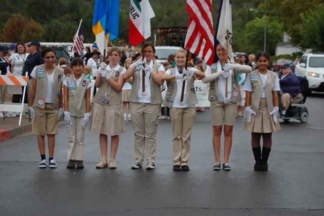 Great job with the color guard and we are proud of the girls who braved the rainy skies to show their Girl Scout Spirit! Watch for the Girl Scouts in the parade on October 9th in Glen Ellen!
